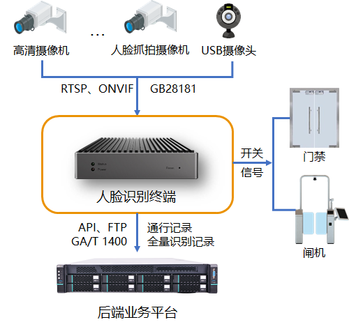 采用人臉識別和訪客機(jī)的方式,通過門口攝像機(jī)采集的人臉信息,跟系統(tǒng)中的人臉庫做比對,判斷來訪者是否有進(jìn)出權(quán)限,并結(jié)合傳統(tǒng)的門禁識別方式,控制門鎖的開關(guān),從而方便人員通行,提高服務(wù)質(zhì)量。業(yè)務(wù)需要的情況下,可以在人臉識別的同時,記錄考勤信息,生成考勤報(bào)表。