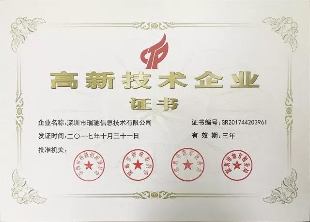 瑞馳信息榮獲“國家高新技術(shù)企業(yè)”認(rèn)定!