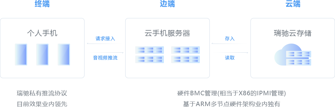 瑞馳云手機(jī)通過(guò)自研的陣列式服務(wù)器在云端建立的安全云手機(jī)系統(tǒng),用戶(hù)使用自己終端通過(guò)網(wǎng)絡(luò)進(jìn)入云手機(jī)后,相當(dāng)擁有了一部全新的手機(jī),不占用本地個(gè)人終端資源,云手機(jī)安全推流到個(gè)人終端顯示業(yè)務(wù),數(shù)據(jù)不落地,不留痕。