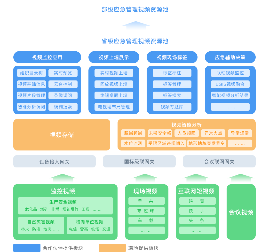 瑞馳合作伙伴通過自研的智慧應(yīng)急綜合管理平臺,結(jié)合瑞馳的AI邊緣計算設(shè)備、算法和微集群視頻云存儲,給客戶提供一整套應(yīng)急管理視頻資源池平臺方案,全面提高園區(qū)、工廠的應(yīng)急管理能力,協(xié)助政府應(yīng)急管理工作。