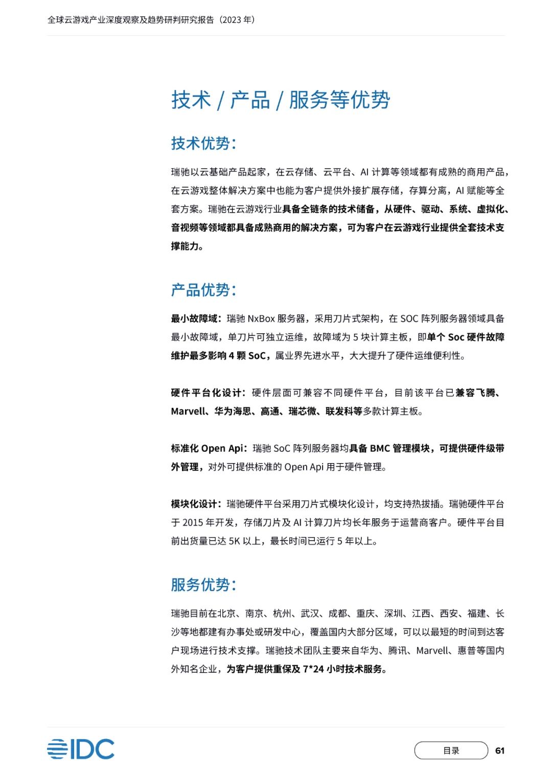 IDC聯(lián)合信通院發(fā)布云游戲報(bào)告 | 瑞馳自研SoC算力平臺(tái)獲高度認(rèn)可